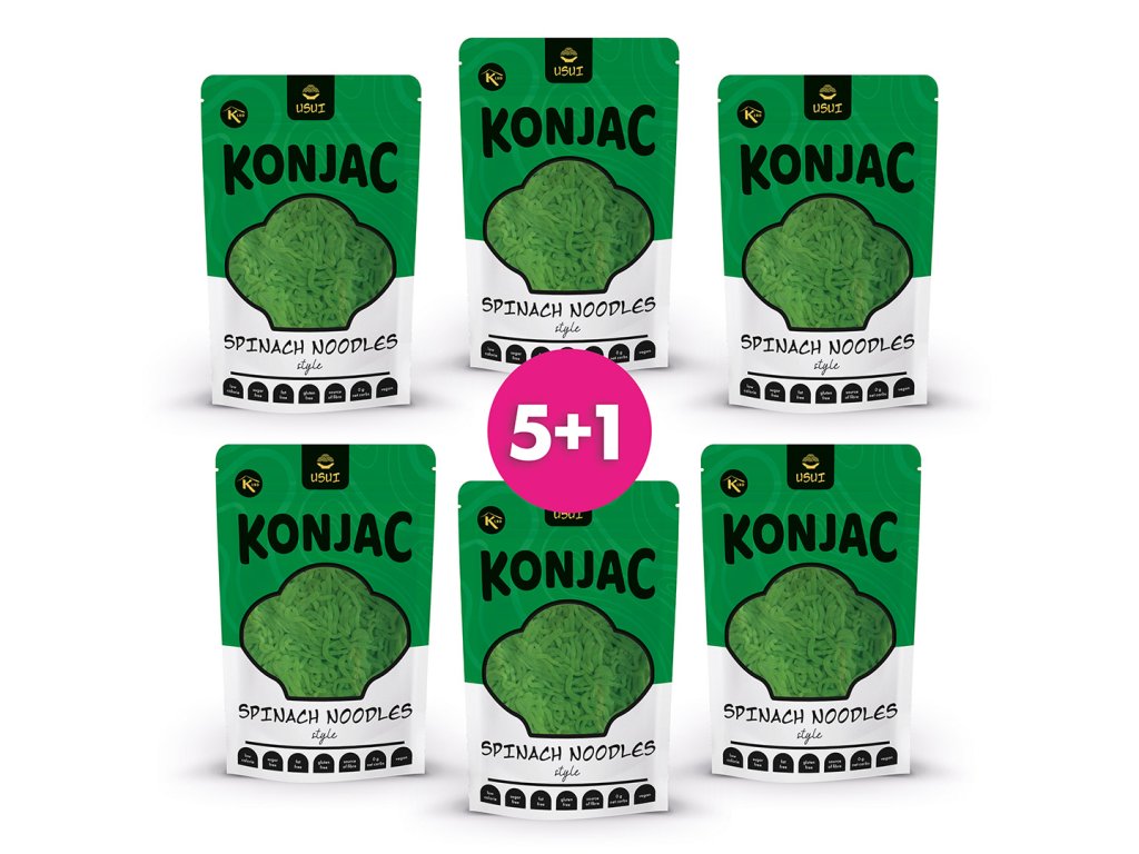 Zamilovali ste si USUI konjakové rezance so špenátom natoľko, že ich nikdy nemáte v kuchyni dosť? Potom je tento balíček 5+1 práve pre vás. Budete mať zásobu a navyše ušetríte.
