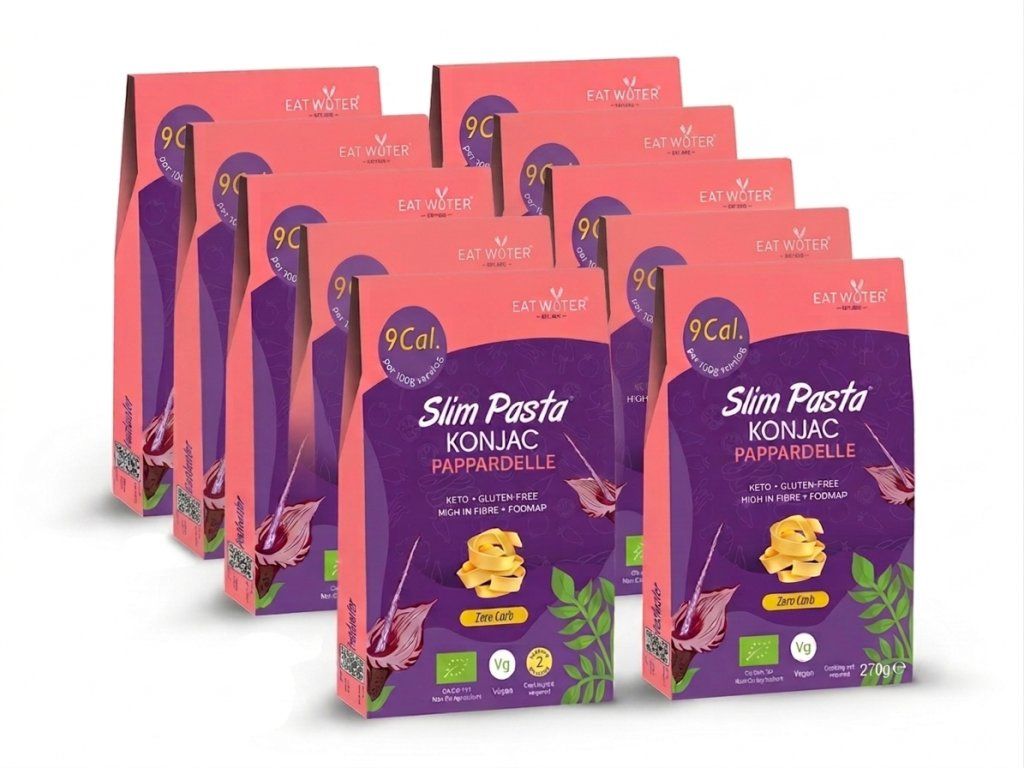 Má Slim Pasta konkurenciu? My si to nemyslíme. Existuje totiž niekoľko výrobcov príloh z konjakovej múky, ale žiadny sa kvalitou, chuťou ani vzhľadom nedostal tak ďaleko, ako práve spoločnosť Eat Water. Spoločnosť Eat Water, výrobca produktov značky Slim Pasta, vyvinula špeciálnu potravinu Juroat ™, ktorá je kombináciou konjakovej múky a ovsenej vlákniny. Ide o unikátnu a patentovanú potravinu, ktorá je farbou a chuťou takmer na nerozoznanie od bežnej cestoviny.